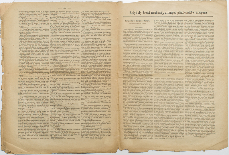 "Artykuły treści naukowej, z innych piśmiennictw czerpane" np. " Społeczeństwo z czasów Homera"